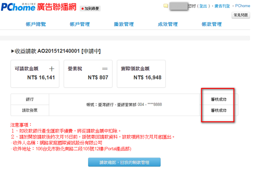 3. 當月月底至次月5日:所有資料經審核無誤,廣告收益完成付款。