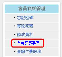 步驟二: 為確認您的身份,您必須先登入會員。 登入之後,請選擇「會員認證專區」
